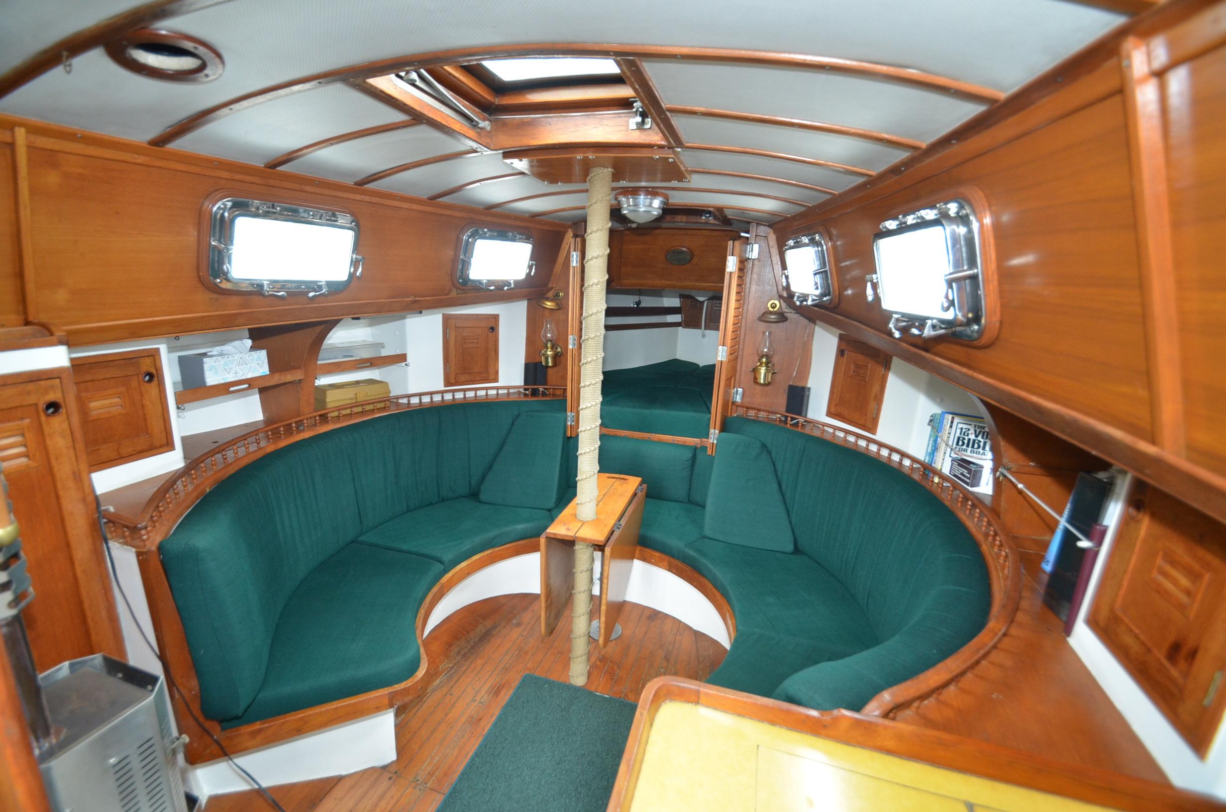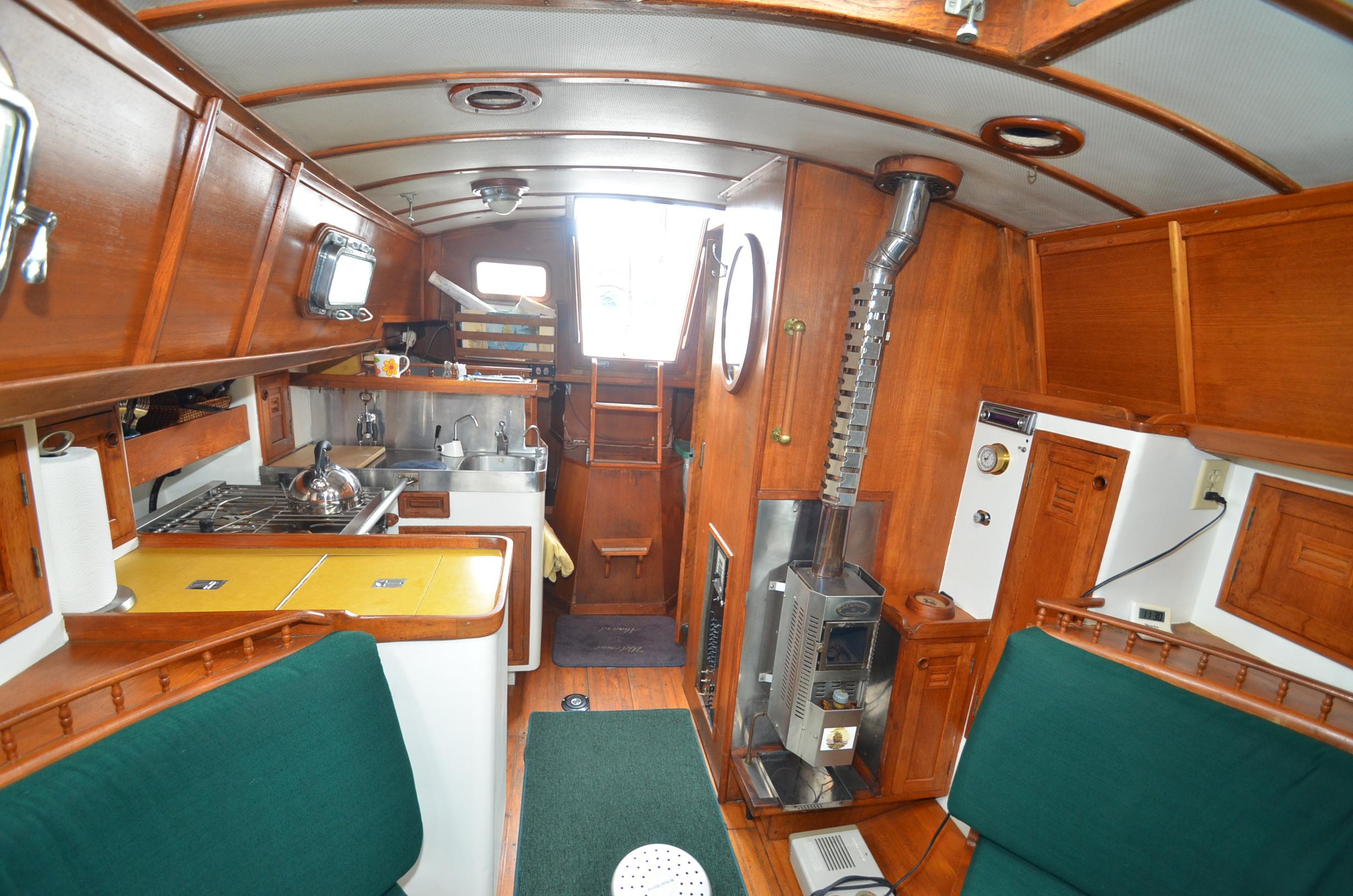 "Tillicum" has a large interior for such a small boat and features a unique circular settee forward that allows for 6 or more to dine and talk in the cozy salon. A diesel bulkhead cabin heater allows for year-round PNW cruising!