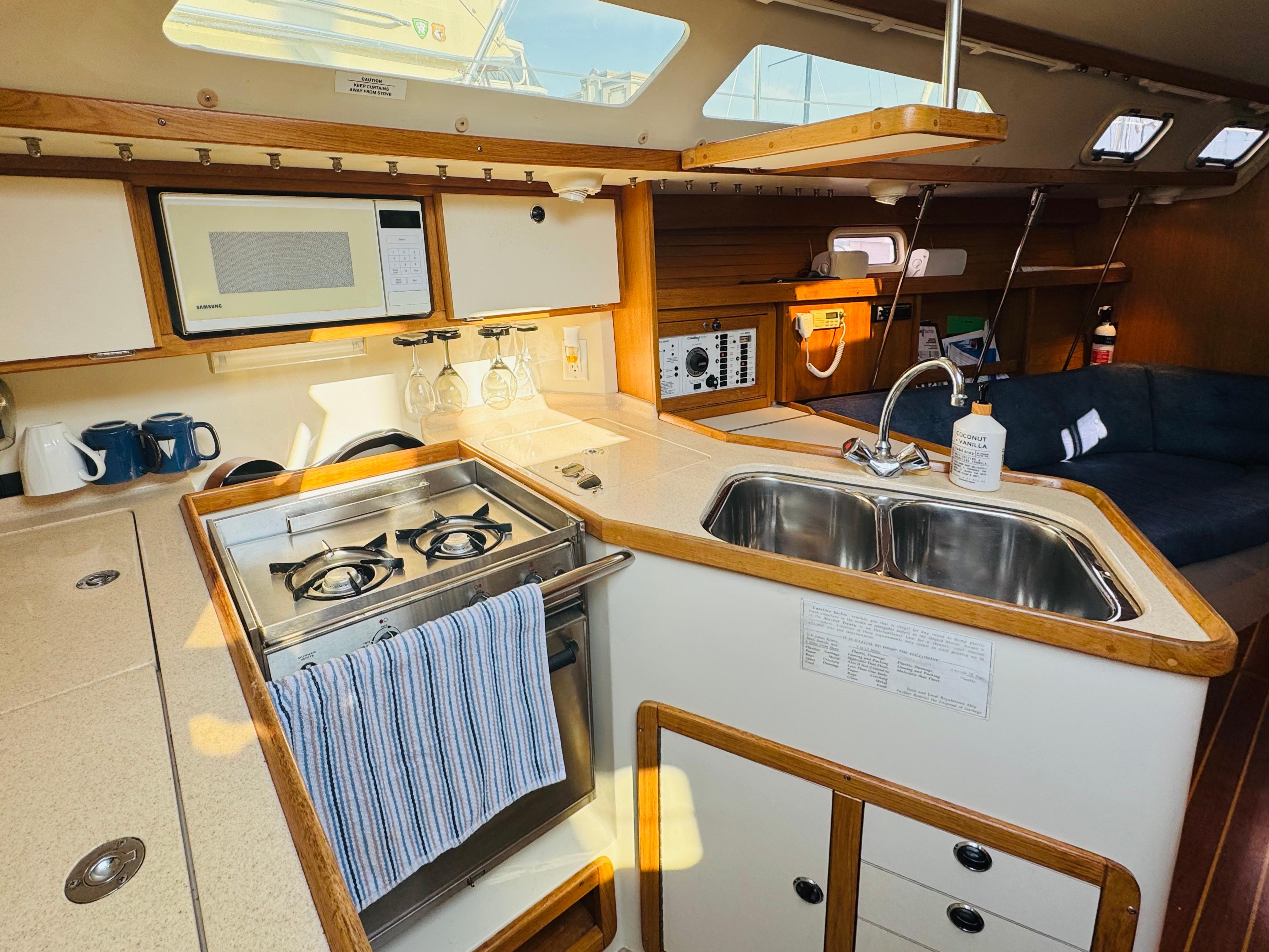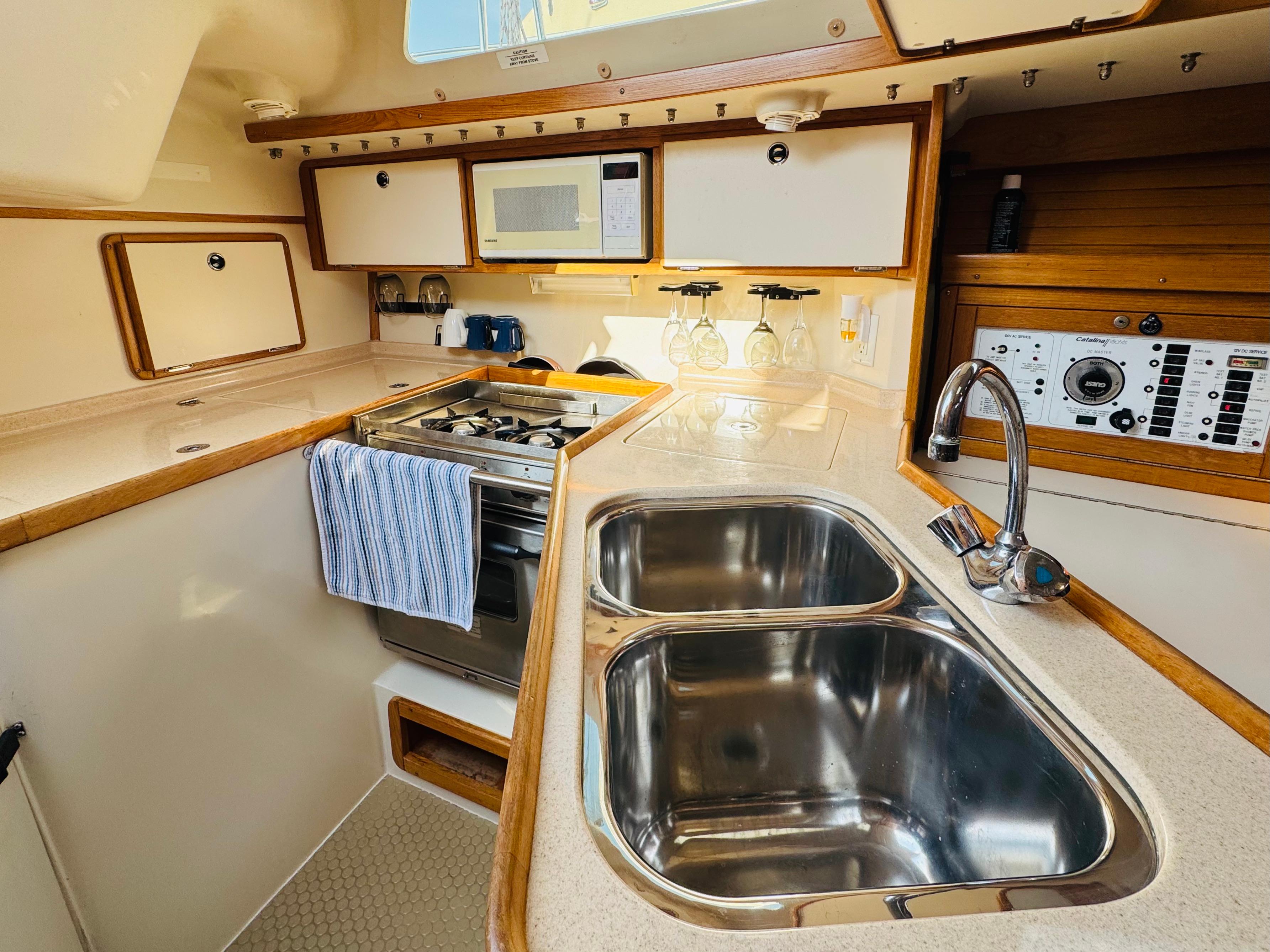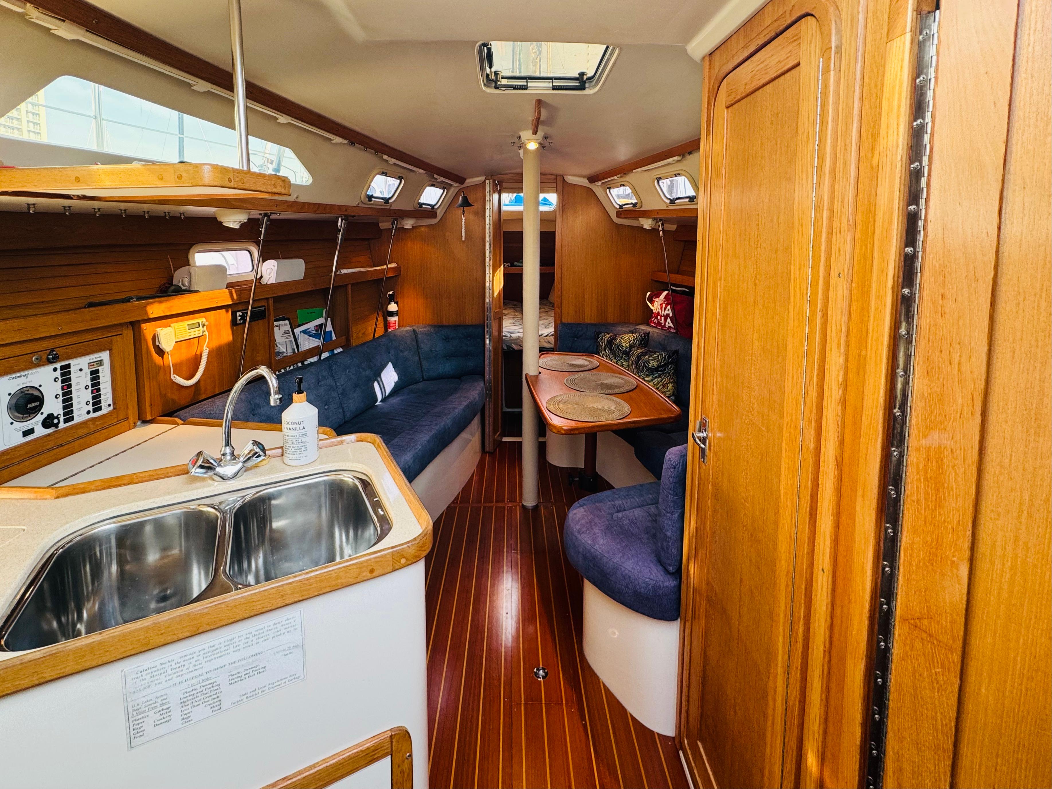 A great example of a boat that has been well maintained throughout her life, Moni, a 1998 Catalina 320, shows as well as she sails.