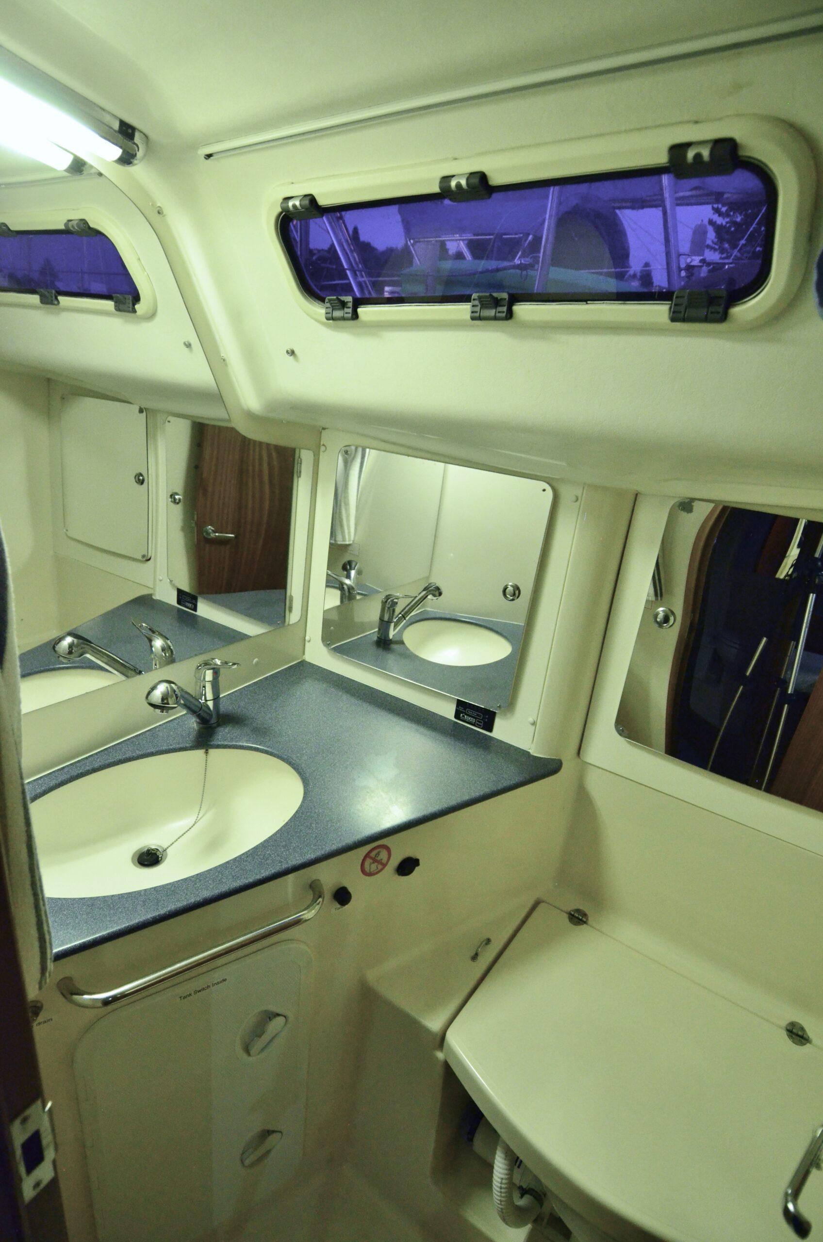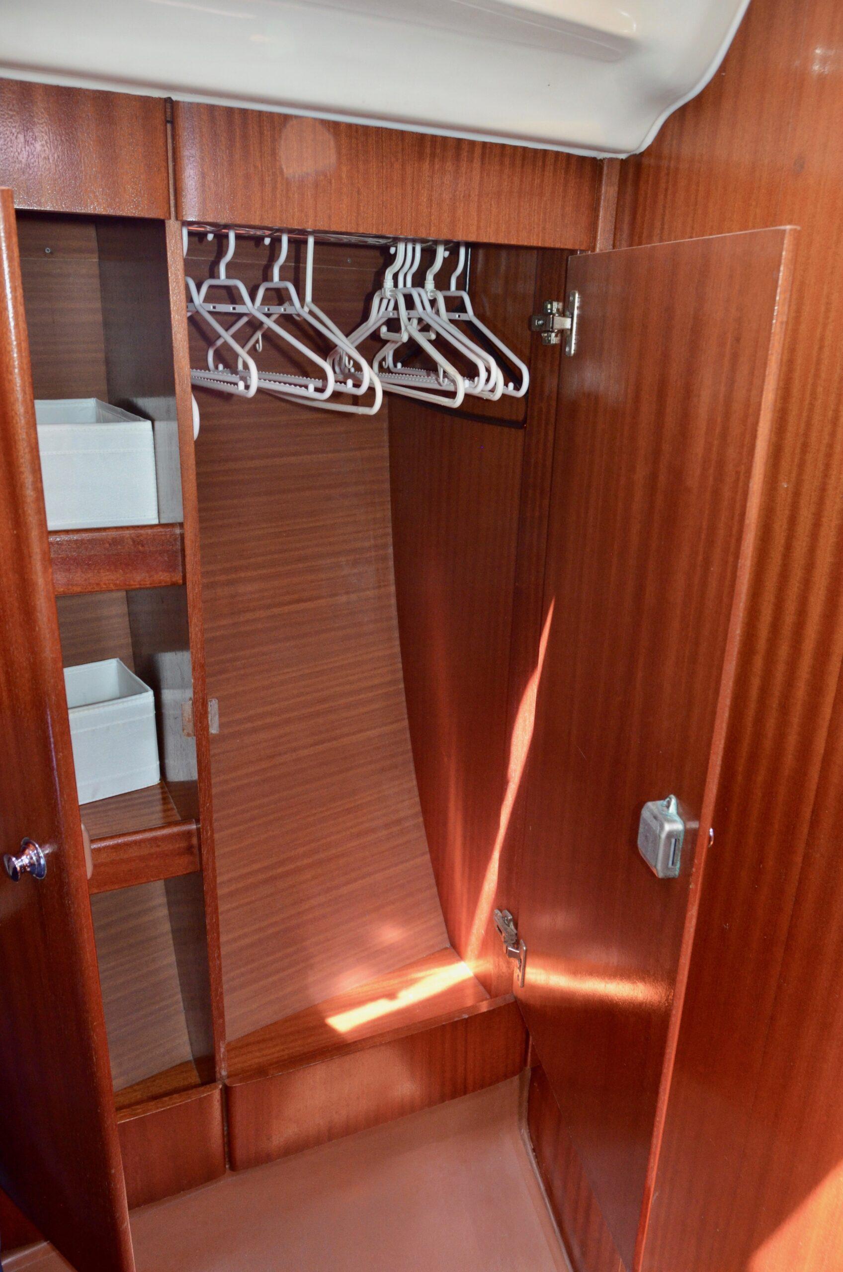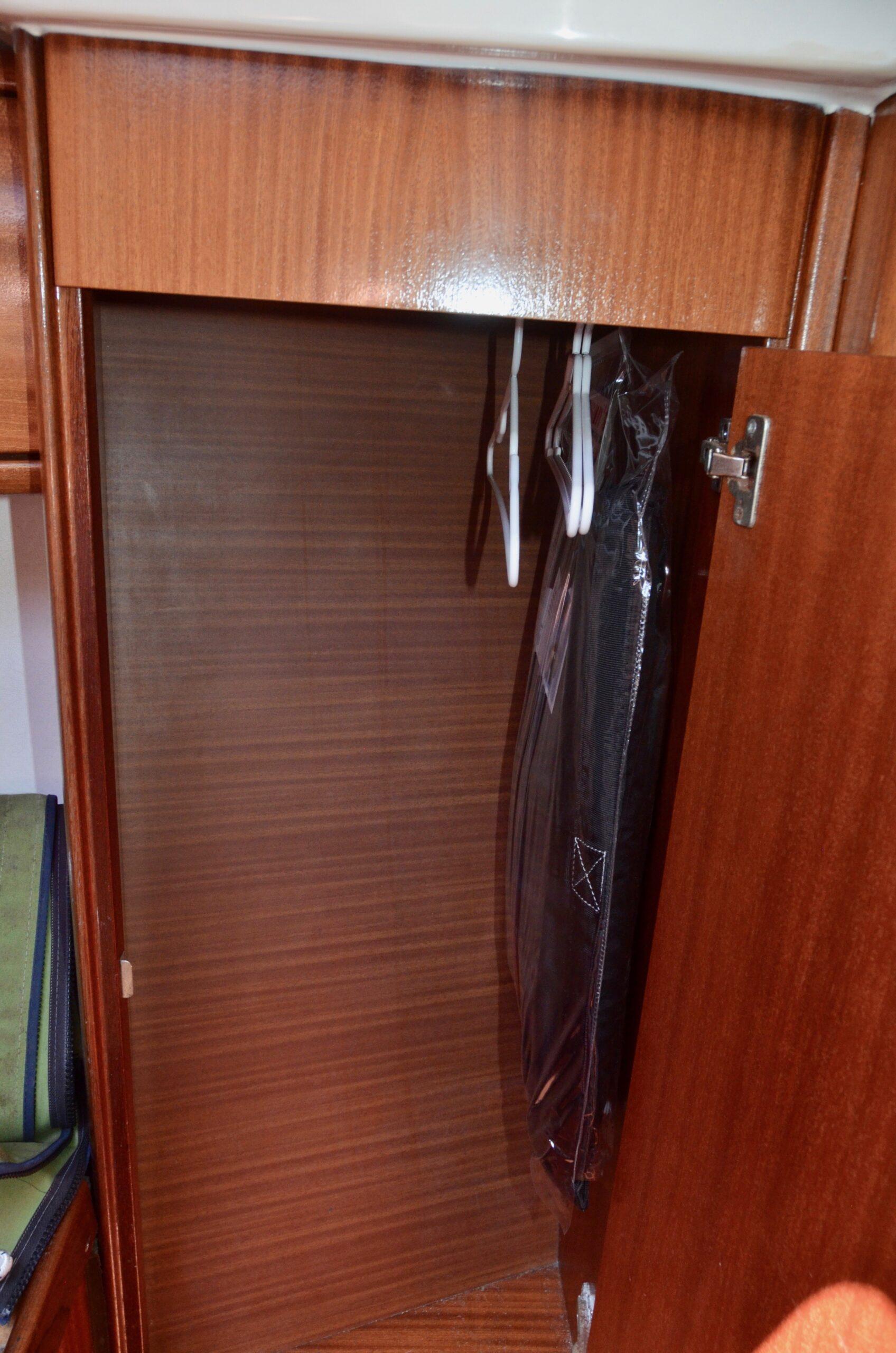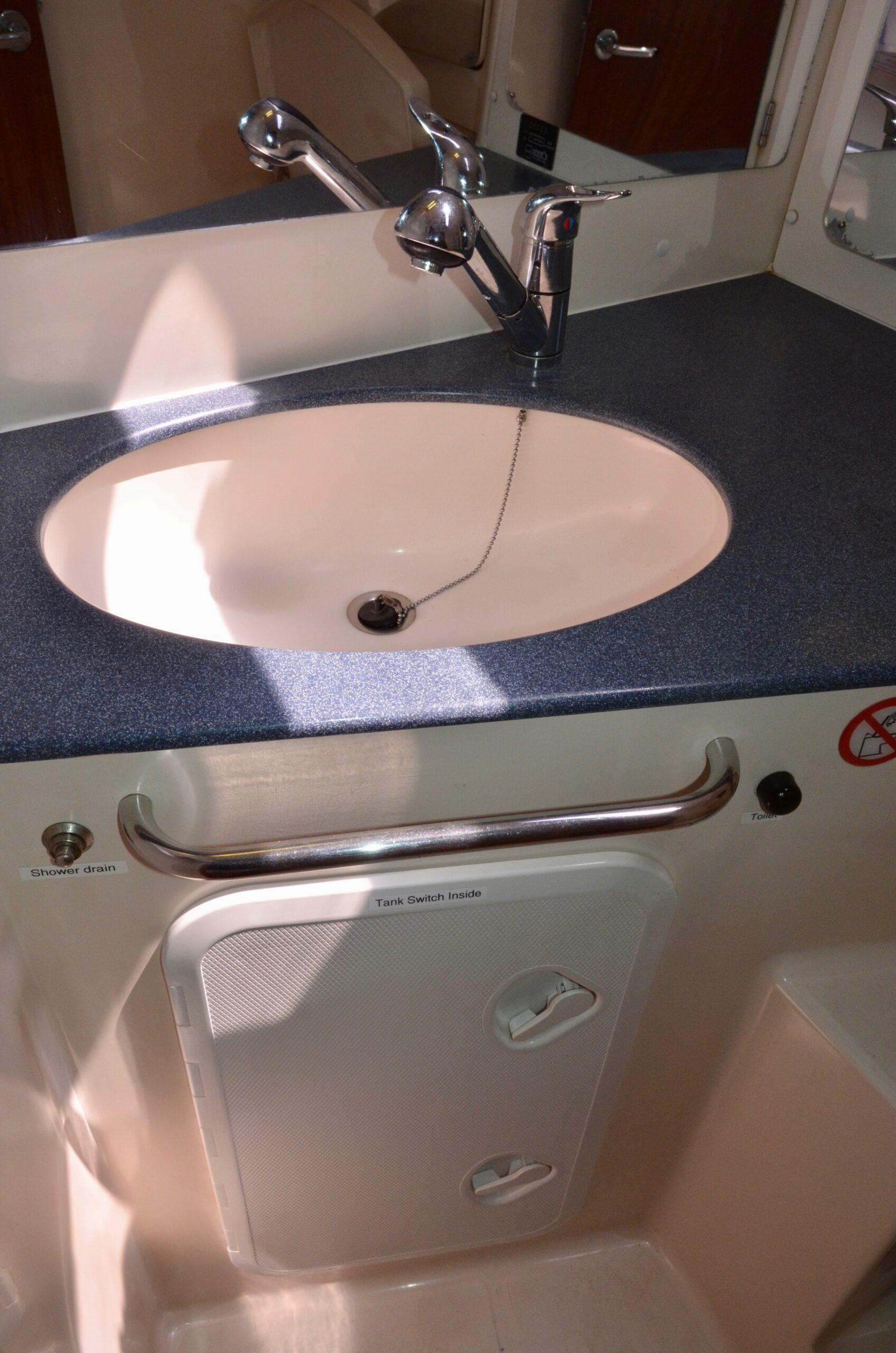 The large aft cabins have double bunks with generous storage closets. The seating in front of the closets makes getting dressed more pleasant. They have excellent cross ventilation from an overhead hatch and porthole that are protected by the dodger and can be open during rainy weather; a feature you’re sure to appreciate in the Caribbean or Northwest. There are two aft heads with electric flush toilets.