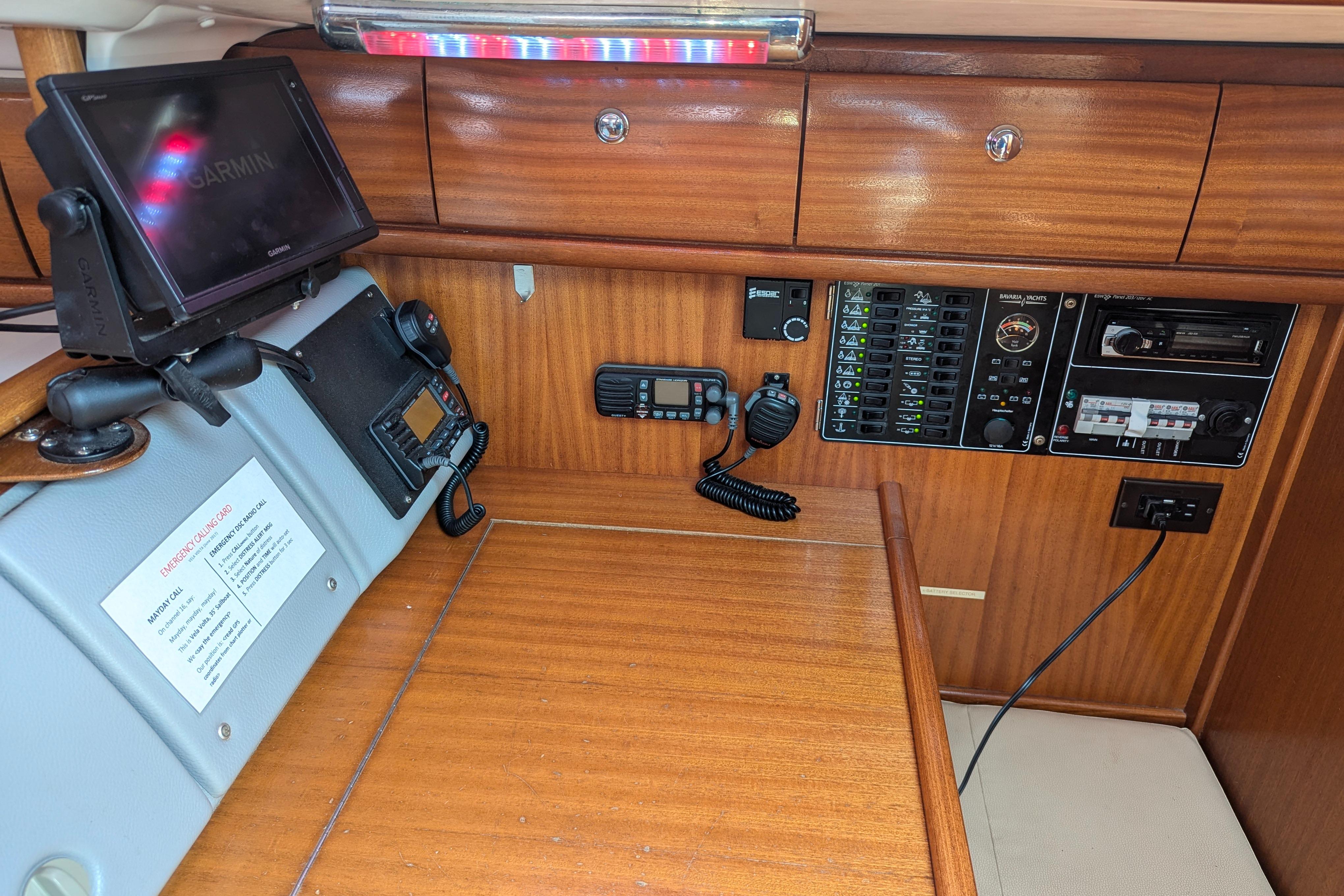 - The main settee, almost 7' long, is a comfortable guest berth.