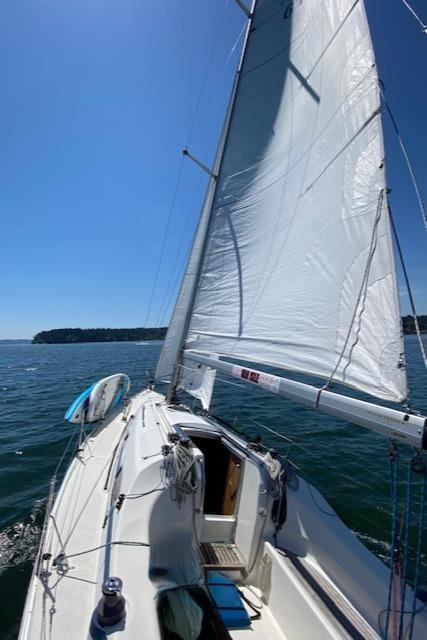 Vela Volta is the quintessential "Racing-Cruiser," designed for exhilarating speed and a welcoming interior. She's a joy to sail, famously performing beautifully to wind thanks to her deep keel. You'll love how she glides through the Puget Sound, whether you're joining a casual race or simply enjoying the journey.