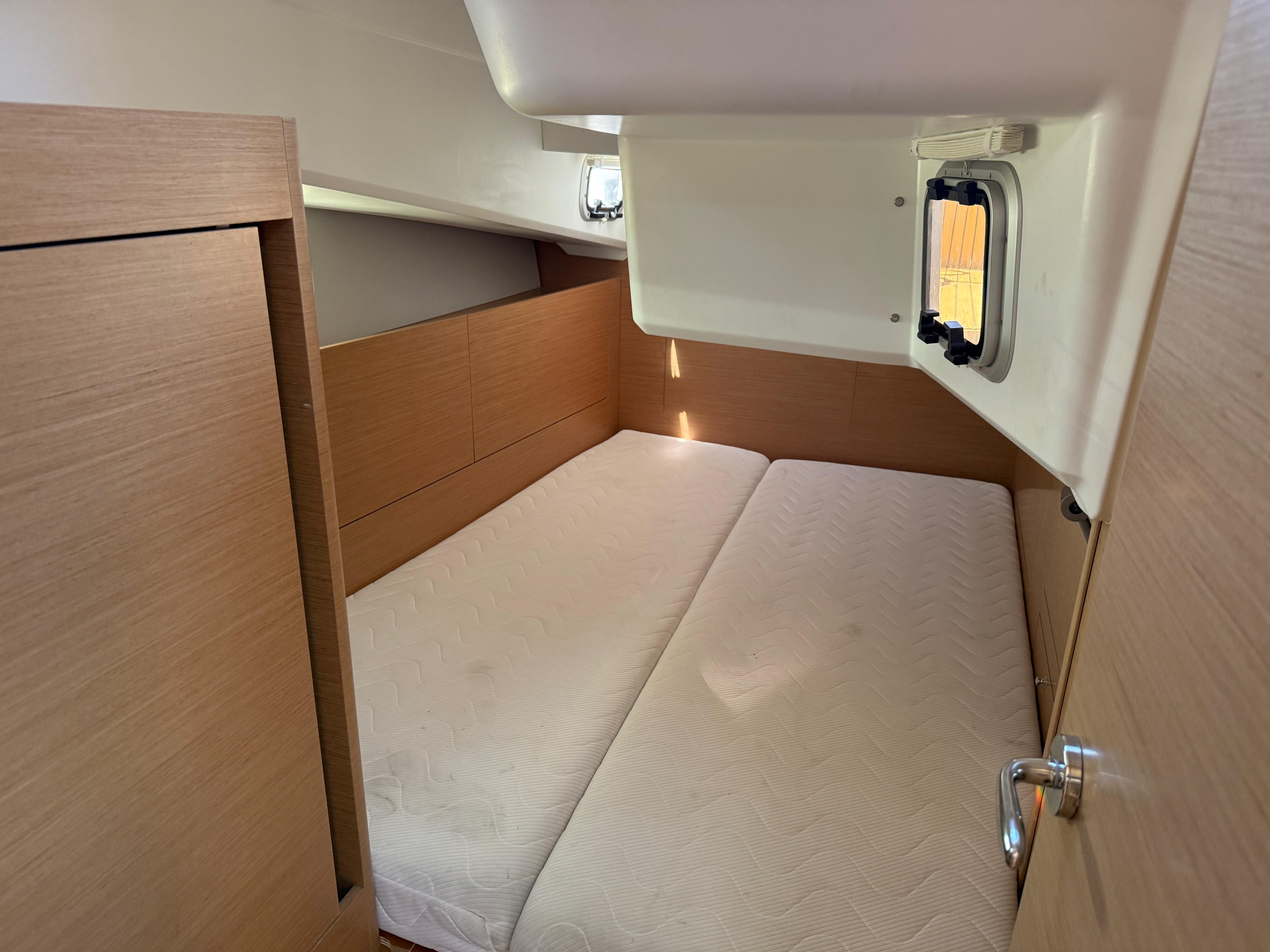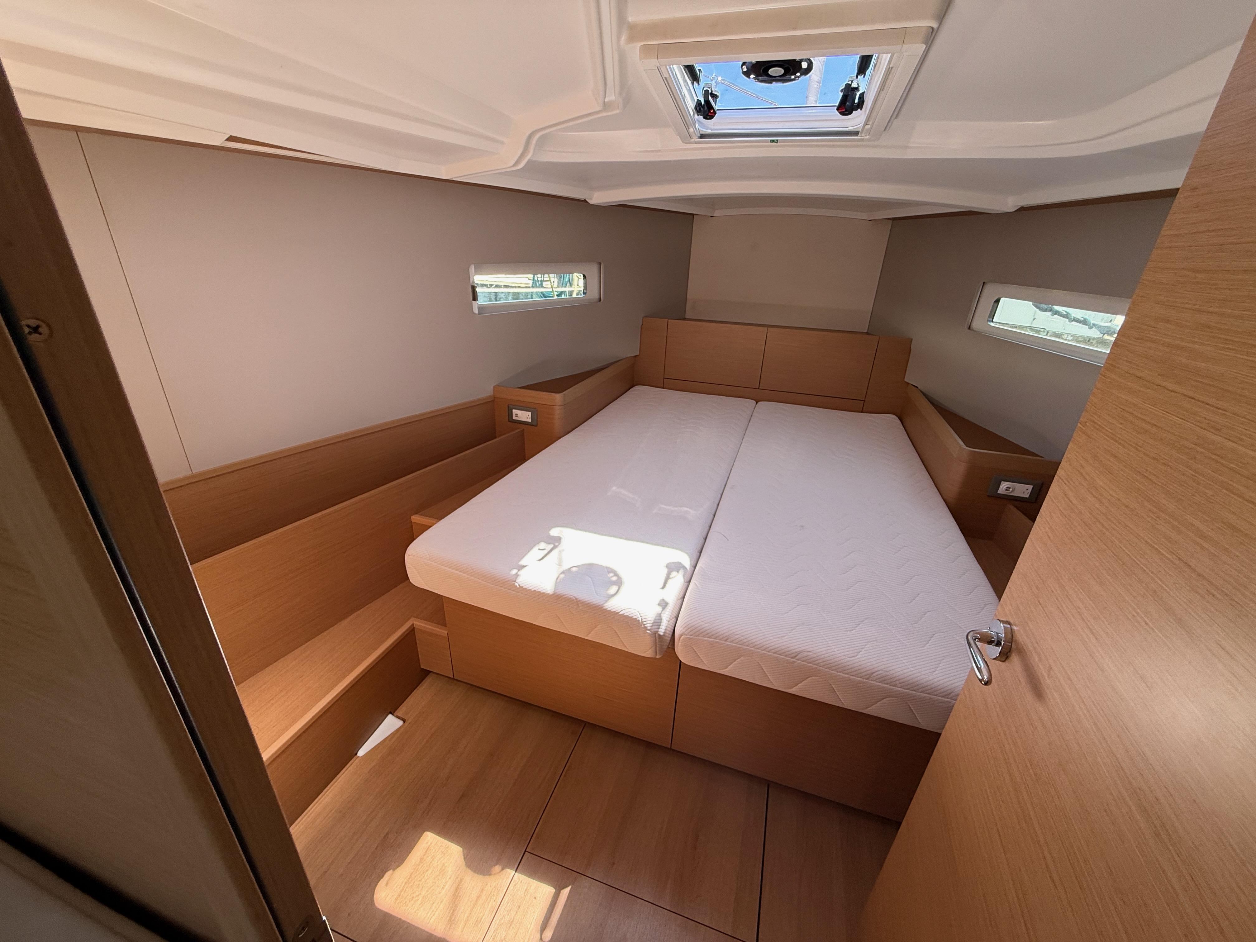 • Aft private berth includes hanging storage, AC and DC power, and three hatches for light and ventilation.
