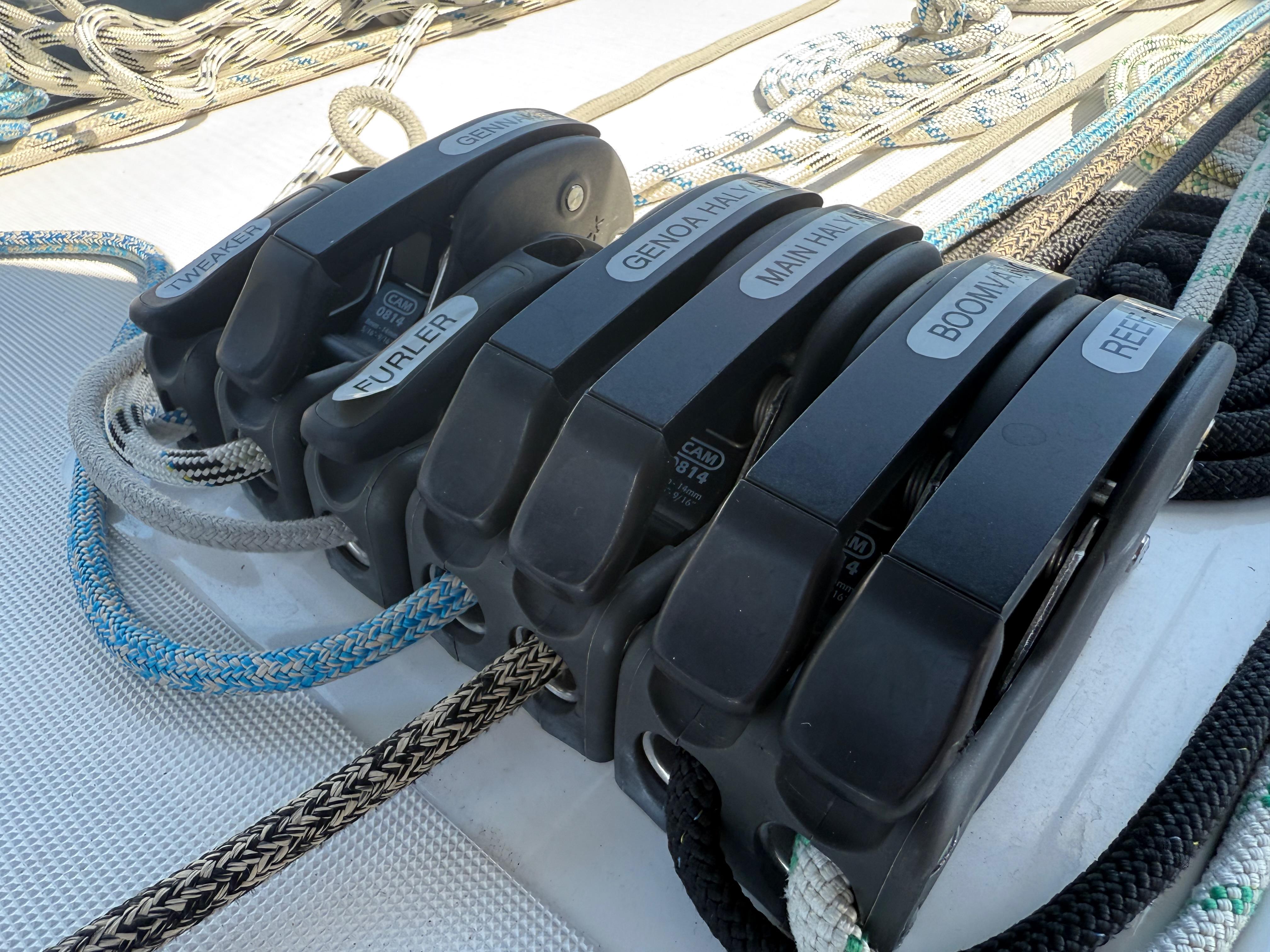 • Sheets lead to helm – German Sheeting