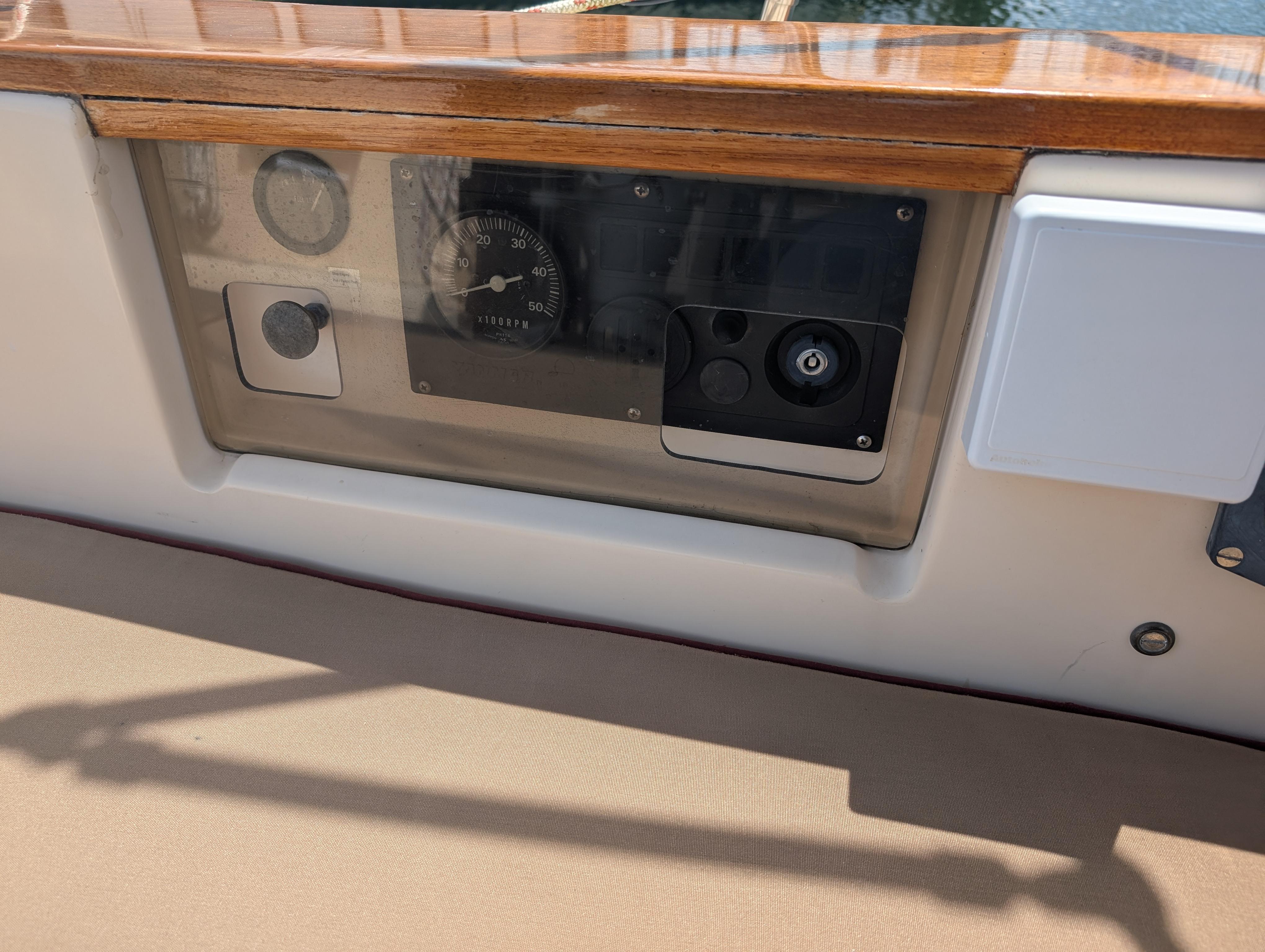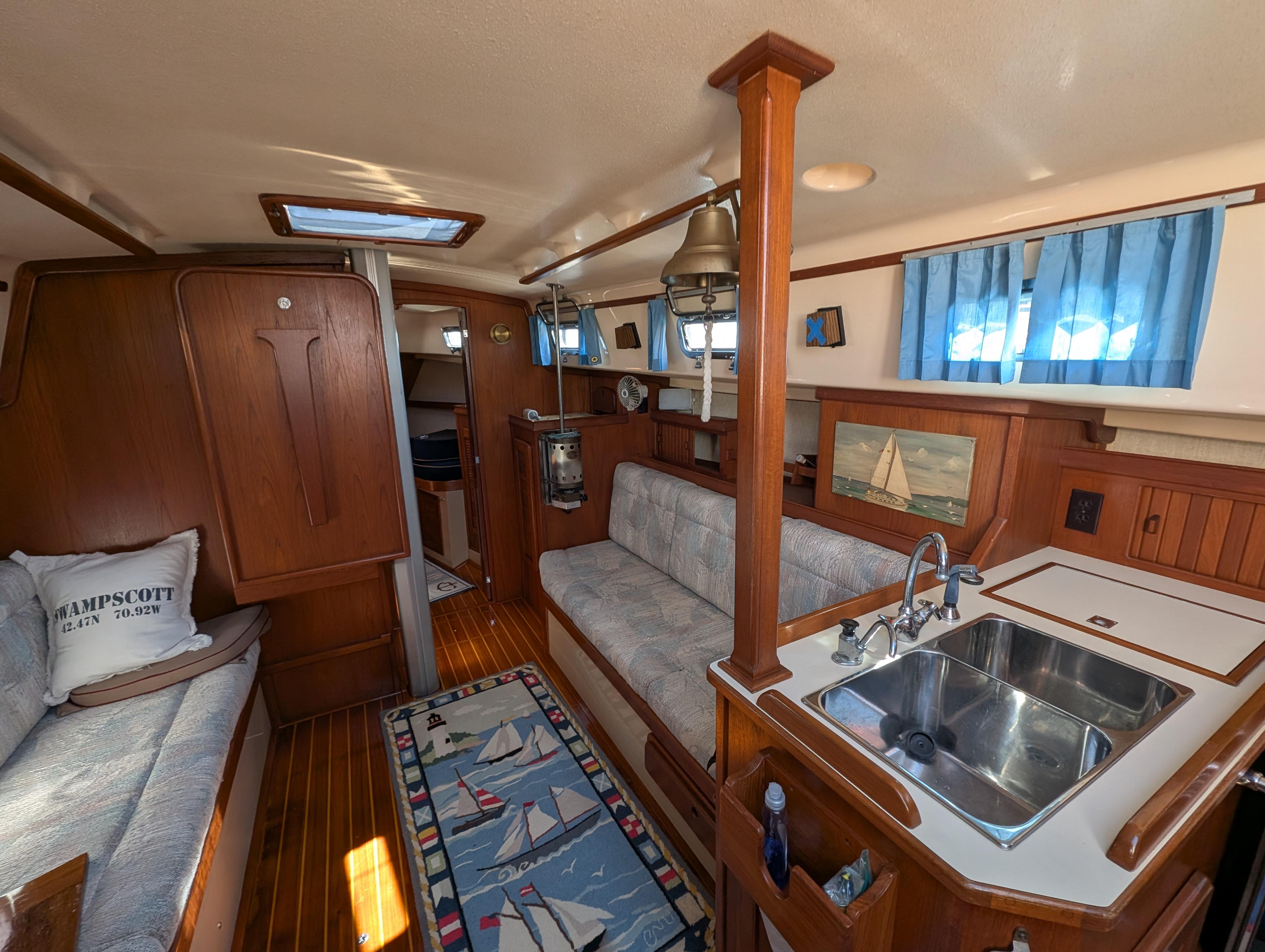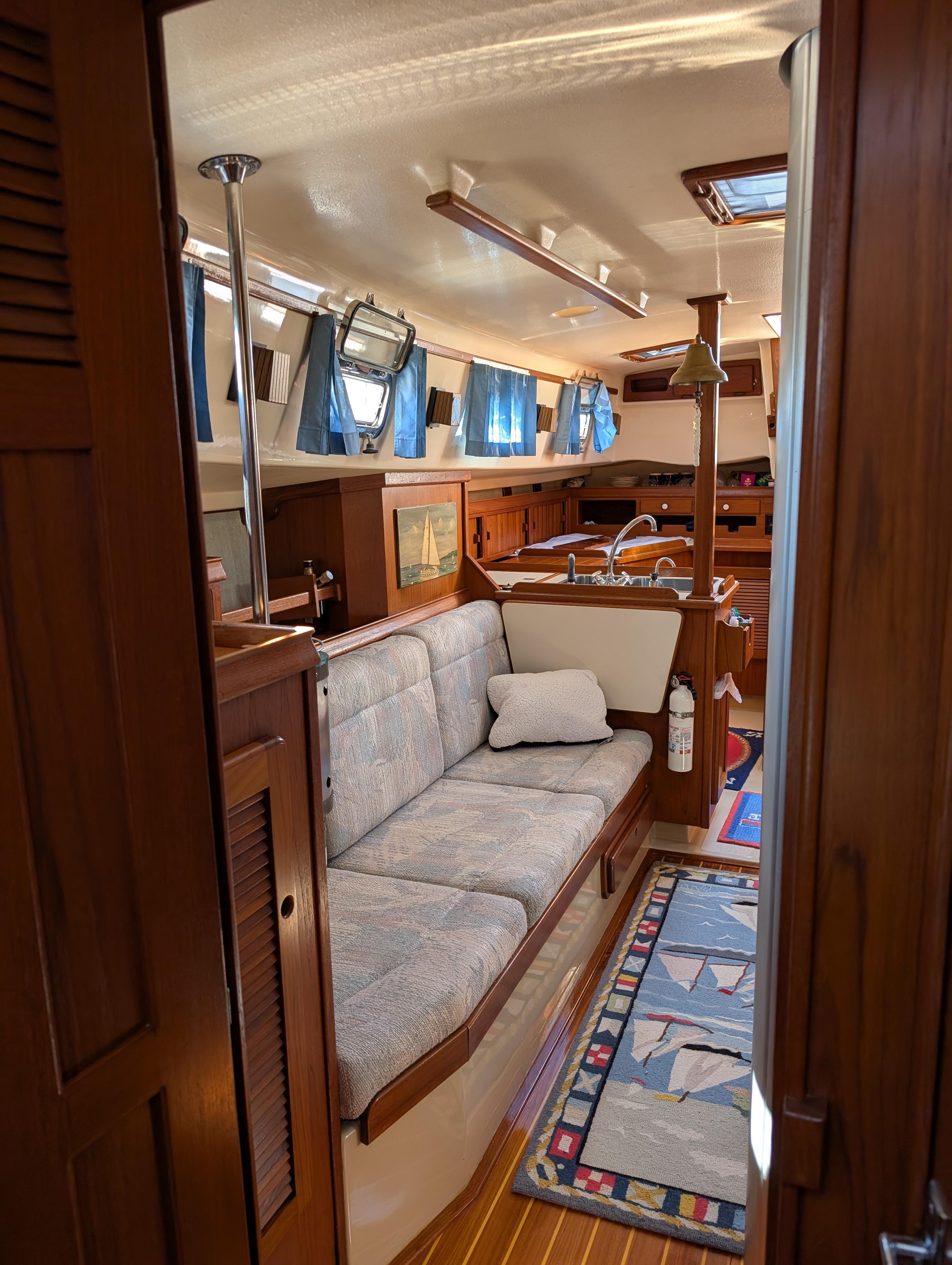 Entering the Island Packet 35, one is immediately impressed with the spacious and bright feeling below. Beautiful cabinetry and joiner-work in select teak provide a warm, functional cruising interior that instills pride. The cabin sole and all interior varnish aboard. Eue De Vie is in impeccable condition and has to be seen to be appreciated. There is an enormous amount of storage throughout.