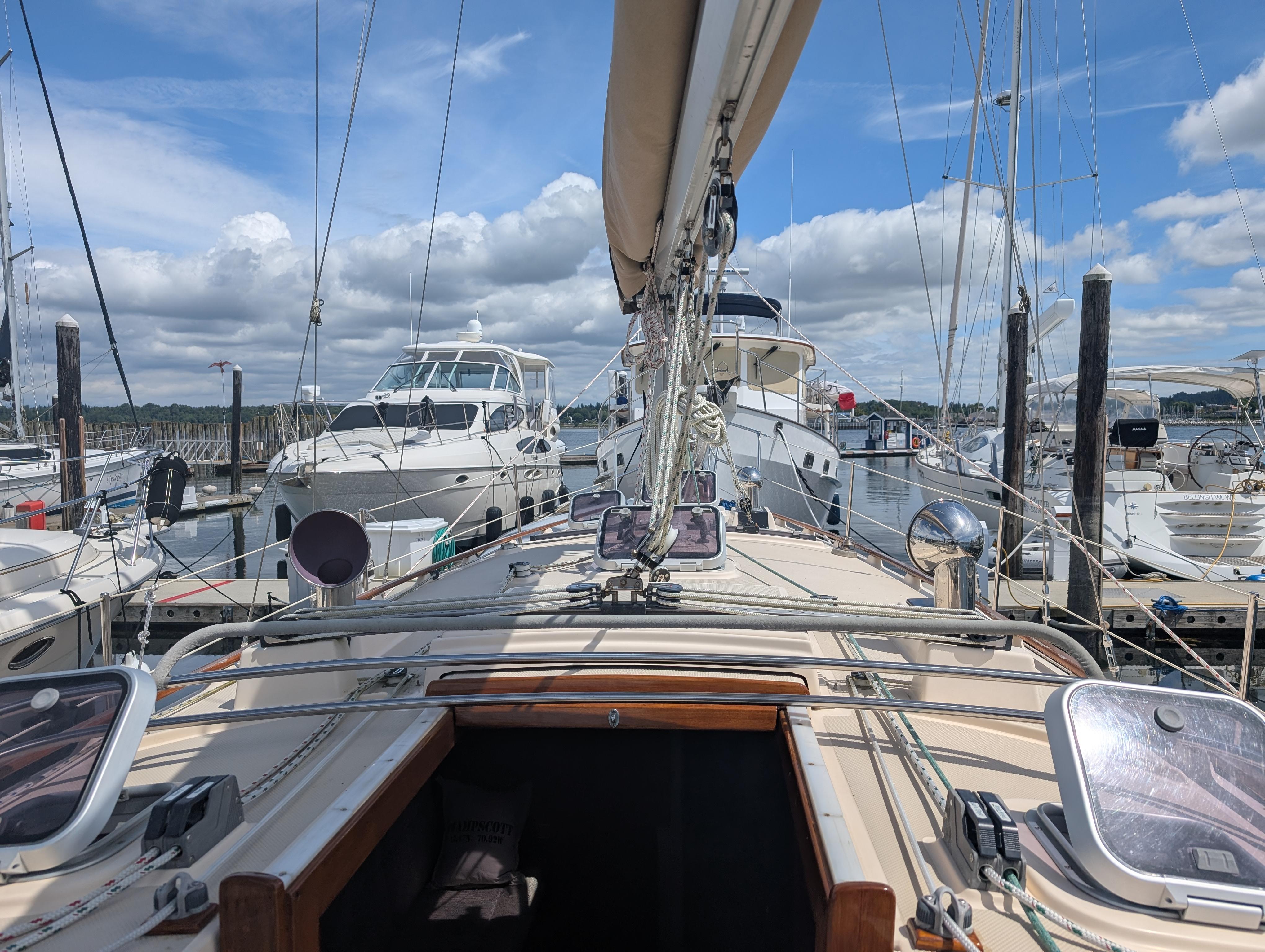 Eau De Vie is an exceptionally equipped cruising boat in absolutely immaculate condition inside and out. This Popular Island Packet design offers proven sea keeping capabilities and the interior accommodations of a much larger vessel. Eau De Vie had been stored indoors most of its life at one of the finest yards in New England until being trucked to the PWN in 2021. A 'must-see' for the serious cruiser who is looking for a "turn key" blue water boat that sparkles like new. Don't miss this one!
