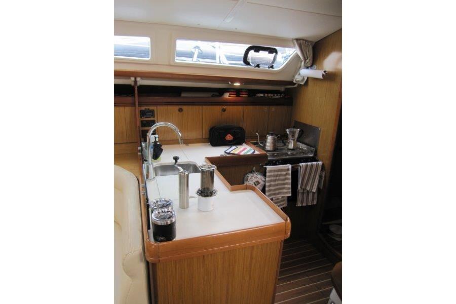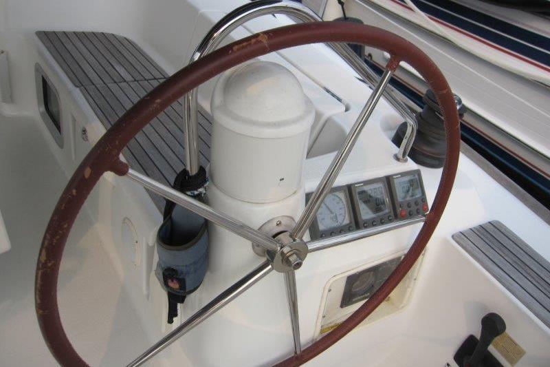Powerful Marc Lombard performance hull design with deep keel and deep feather tipped elliptical rudder - a fantastic sailing machine! Twin steering stations with winches placed near the helms provide for easy sail handling. Wide side decks for easy movement forward and a large cockpit for fun-filled days aboard. Great 2C/1H interior layout with HUGE head and completely separate shower along with big storage "garage". Lots of interior storage and space to spread out.